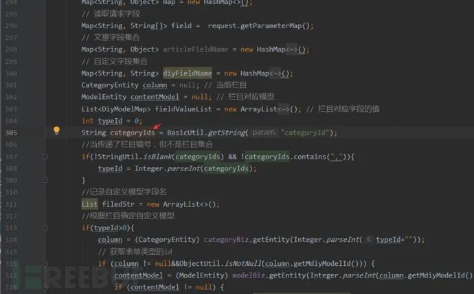 调转到ContentBizImpl,确认前台参数为categoryIds