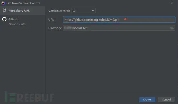 Idea首页 点击Get from Version Control,输入https://gitee.com/mingSoft/MCMS.git