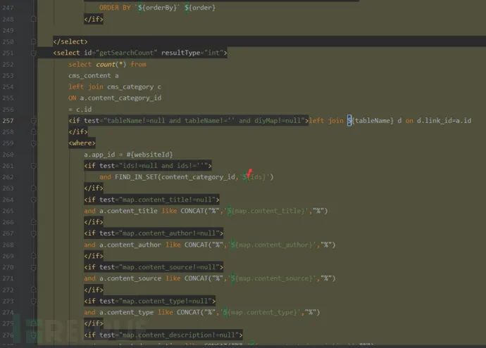 我们使用一个开源的cms来分析,java sql注入问题适合使用反推,先搜索xml查找可能存在注入的漏洞点-->反推到DAO-->再到实现类-->再通过调用链找到前台URL,找到利用点,话不多说走起