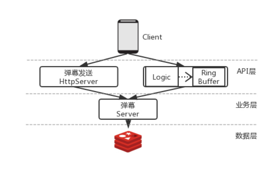 为了保证服务的稳定性我们对服务进行了拆分,将复杂的逻辑收拢到发送弹幕的一端。同时,将逻辑较为复杂、调用较少的发送弹幕业务与逻辑简单、调用量高的弹幕拉取服务拆分开来。服务拆分主要考虑因素是为了不让服务间相互影响,对于这种系统服务,不同服务的QPS往往是不对等的,例如像拉取弹幕的服务的请求频率和负载通常会比发送弹幕服务高1到2个数量级,在这种情况下不能让拉弹幕服务把发弹幕服务搞垮,反之亦然,最⼤度地保证系统的可用性,同时也更更加方便对各个服务做Scale-Up和Scale-Out。服务拆分也划清了业务边界,方便协同开发。
