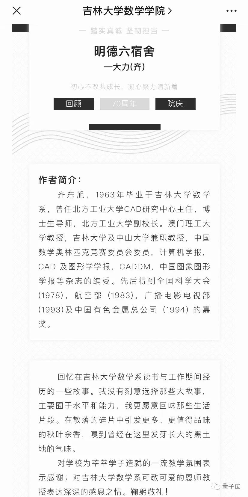 就在4个月前,他还写下了一篇回忆录,记录了他在吉林大学数学系的许多记忆,也让我们感受到学术之外的齐教授,总是风趣幽默的。