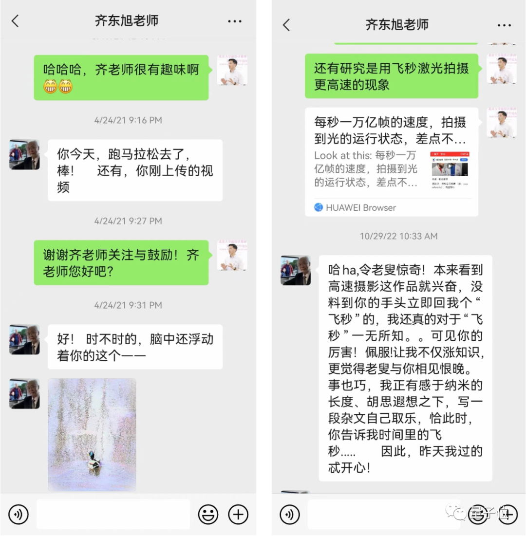 此前,他发了一张照片齐老很感兴趣,还特地来找他交流,言语之间满是科研人对于新鲜事物本能的好奇心。