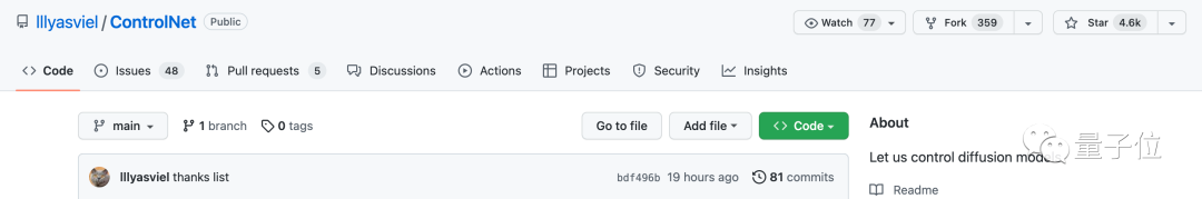 发出不到两天,ControlNet就在GitHub上火了,目前已经狂揽4.6k星: