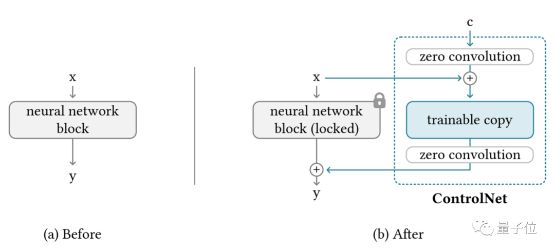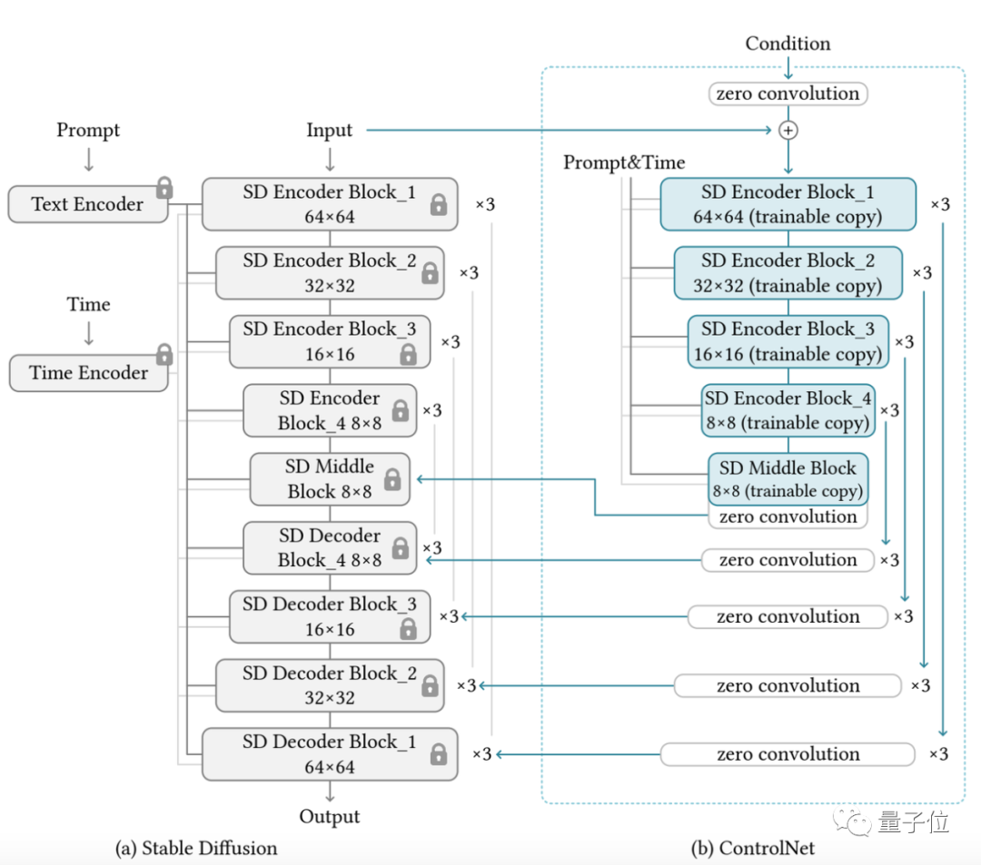 “锁定模型”和“可训练副本”通过一个1×1的卷积层连接,名叫“0卷积层”。