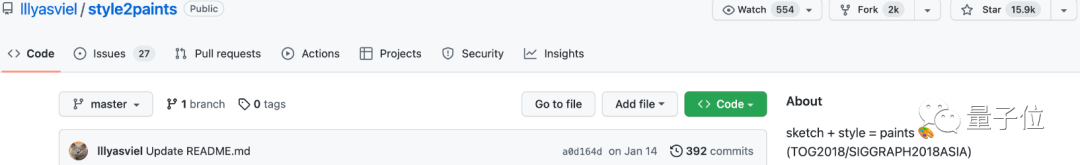 他最出名的项目之一,是2017年开发的AI上色插件style2paints,目前GitHub上已经有15.9k星。