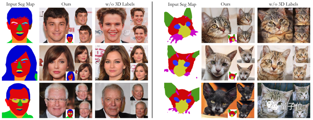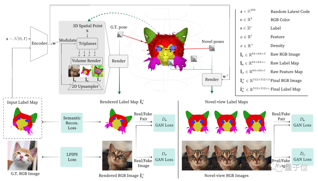 重建损失可以确保2D用户输入和相应的3D内容对齐,像素对齐条件鉴别器( pixel-alignedconditional discriminator)也进一步促使外观和标签对应合理,并在新视角时也保持像素对齐。