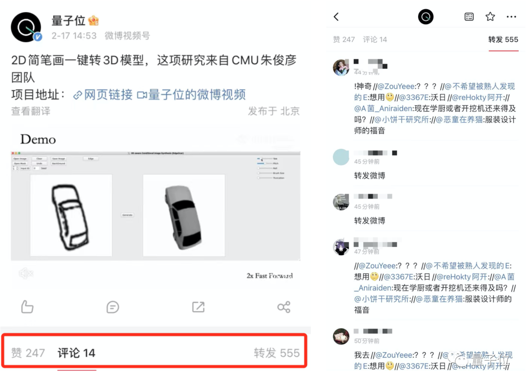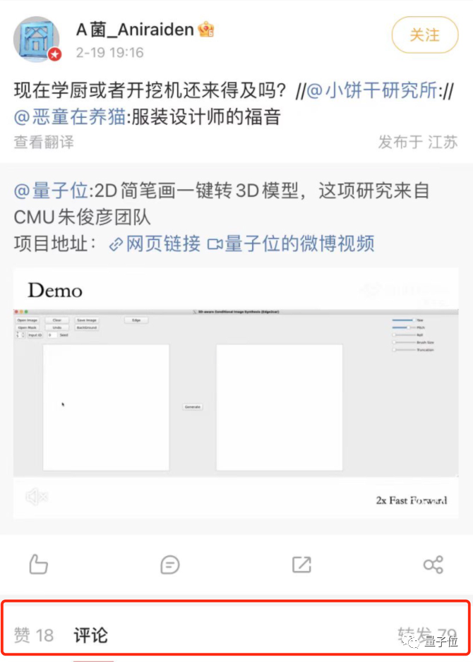 量子位在微博上搬运了朱俊彦团队的新成果,一个能将2D草图一键变成3D模型的新算法,却意外引发设计圈盆友们的热烈转发讨论。