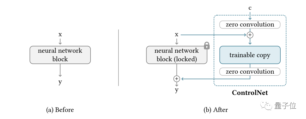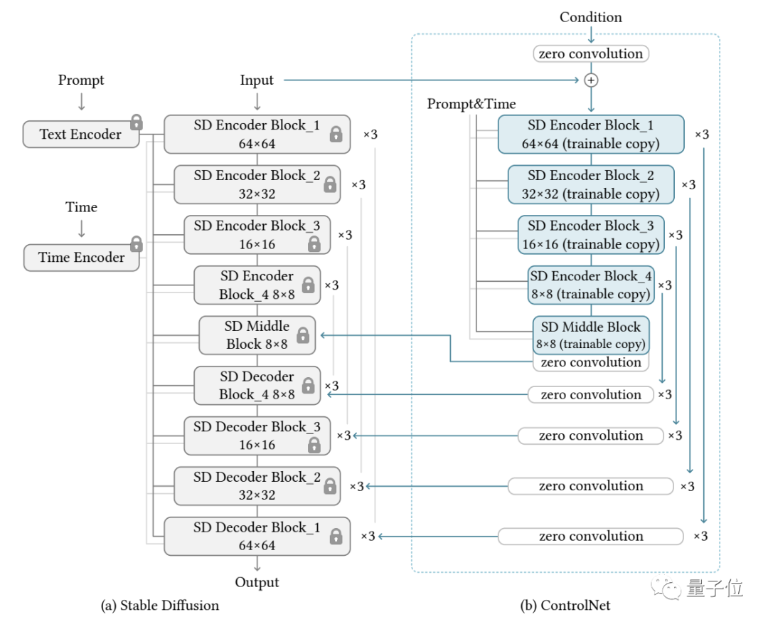 “锁定模型”和“可训练副本”通过一个1×1的卷积层连接,名叫“0卷积层”。