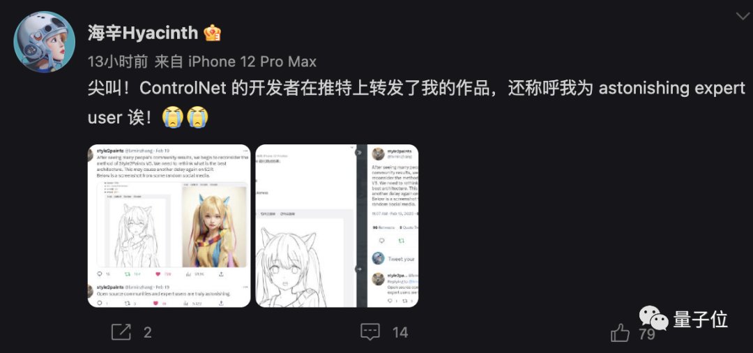 “海辛Hyacinth”的这波操作也是得到了ControlNet作者的认可: