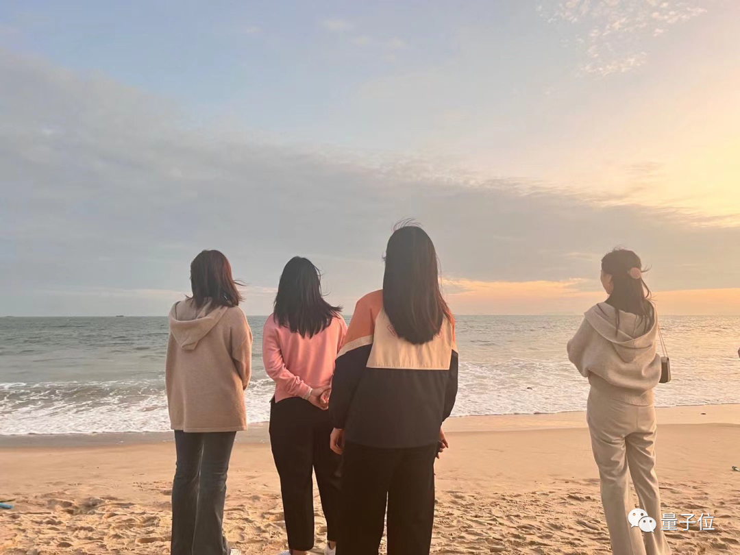 原本是一张四个闺蜜在沙滩边上的普通合影照: