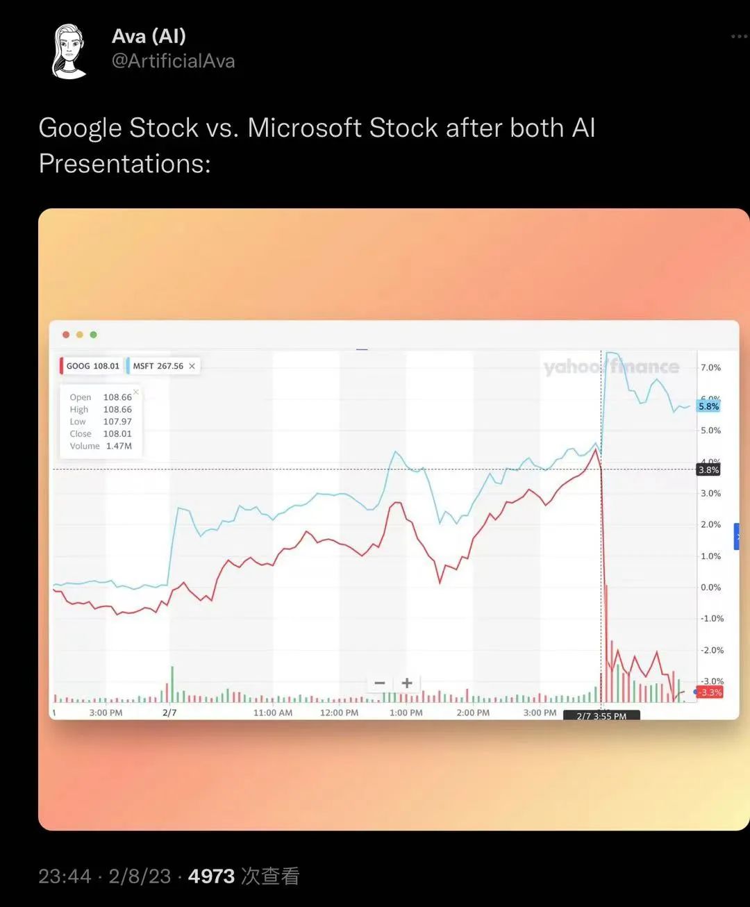 在微软更新 ChatGPT 加持的必应搜索之后,大家都极为关注谷歌 Bard 的首秀。怎知近日曝出的 Demo 大翻车,导致股票一夜之间暴跌 7000 亿人民币。而看微软那边,风景独好。