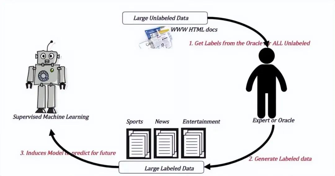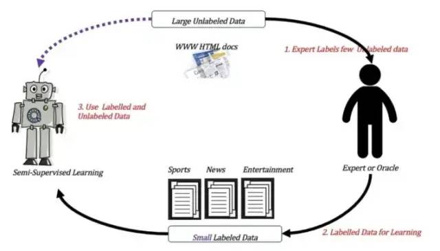 定义:训练集同时包含有标记样本数据和未标记样本数据。