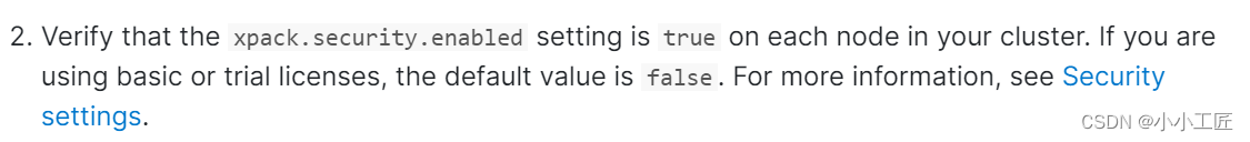 xpack.security.enabled控制安全配置的开启, 默认情况下为false, 要想开启安全策略需要在所有集群中把改参数设置为true
