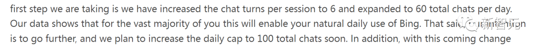 首先第一步,就是让大家每天可以和必应聊60次,每次能说6句话。而且,微软计划以后可以把每天的上限提高到100次。