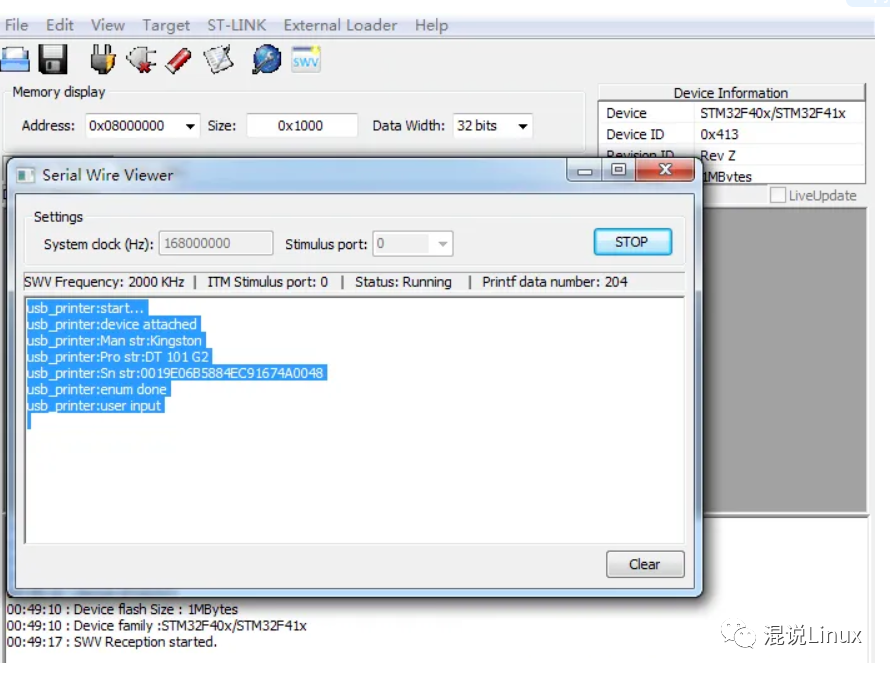通过打印log到SRAM的方式可以看到log,但是数据量多的时候可能来不及查看就被覆盖了。为了解决这个问题,可以使用St-link的SWO输出log,这样就不用担心log被覆盖。