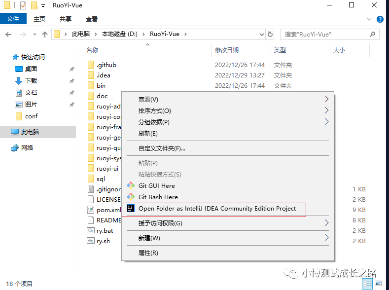也可以打开文件夹进入代码根目录,然后鼠标右键的方式打开项目: