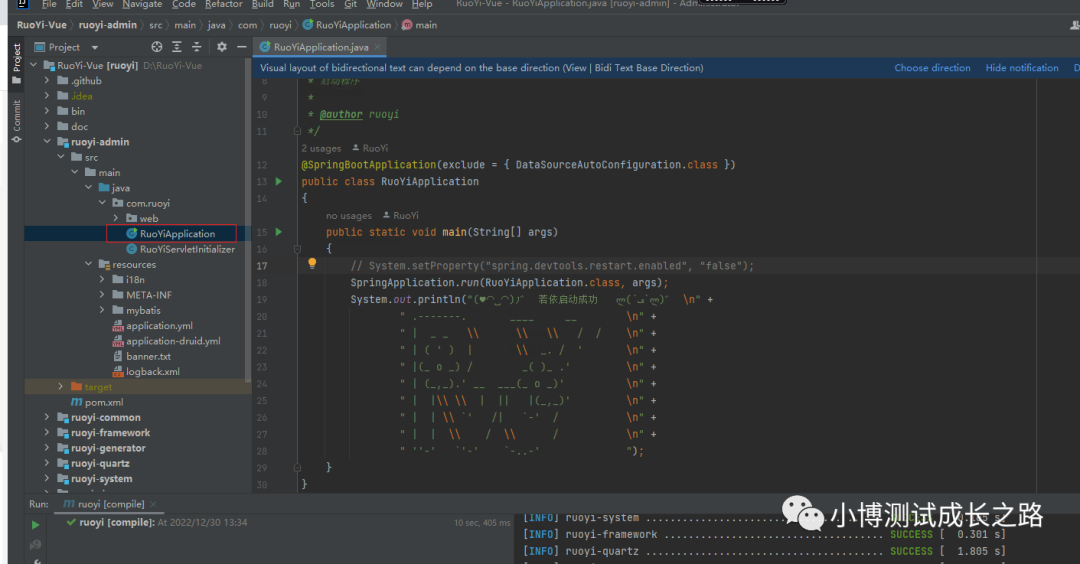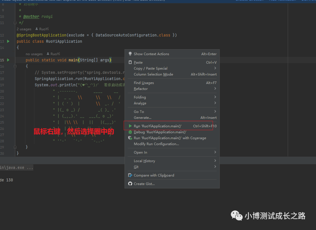 这里,我们先在idea中启动一下RuoYiApplication这个文件先看看效果: