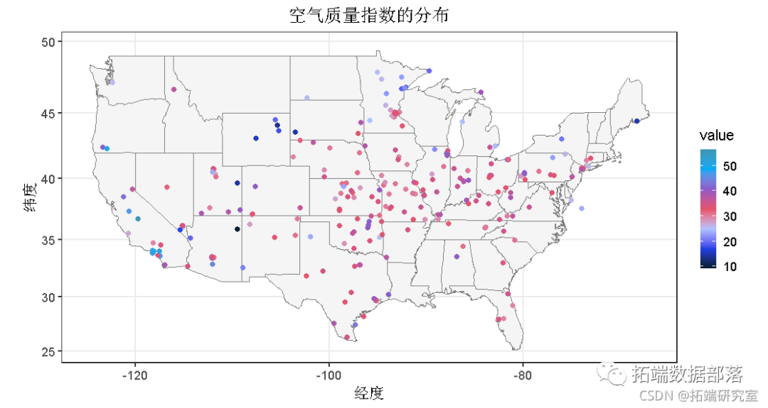 R语言空气污染数据的地理空间可视化和分析:颗粒物2.5(PM2.5)和空气质量指数(AQI)