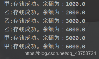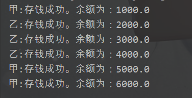 System.out.println(Thread.currentThread().getName() + ":存钱成功。余额为:" + balance);
