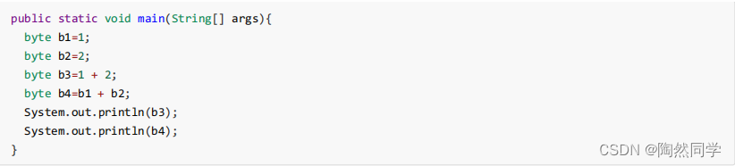 么,因此会将结果以 int 类型进行处理,所以 int 类型不能赋值给 byte 类型,因此编译失败。
