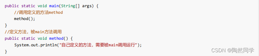 方法在定义完毕后,方法不会自己运行,必须被调用才能执行,我们可以在主方法 main 中来调用