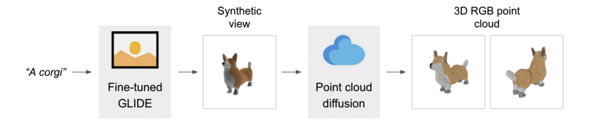 Point·E 中,text-to-image 模型利用了大型语料库 (text, image pair),使其对复杂的文本提示也能处理得当;image-to-3D 模型则是在一个较小的数据集 (image, 3D pair) 上训练的。