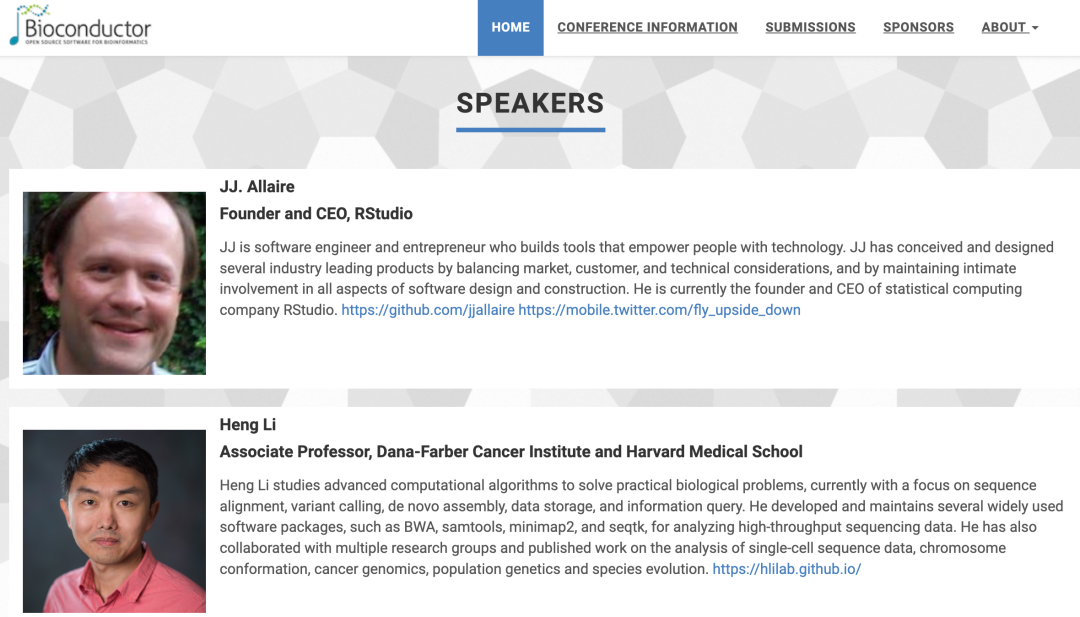查阅会议官网(https://bioc2023.bioconductor.org/),映入眼帘的就是李恒大佬: