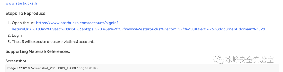 很快他通过我提供的redirect xss找到了hacker-one星巴克的一个洞。