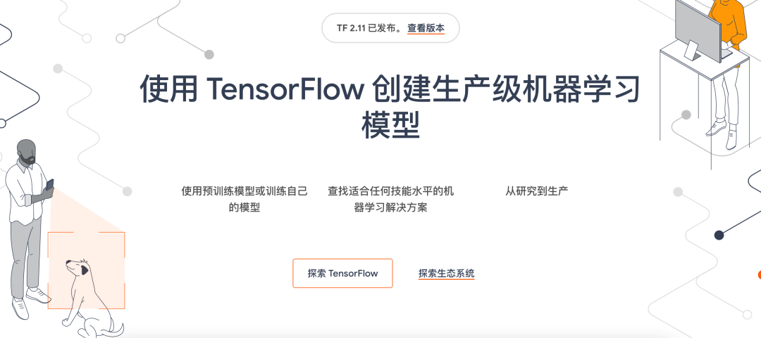 这是 TensorFlow 的官网,用于创建生产级机器学习模型。也就是说想要完成一个简单的 ChatGPT 得从这开始。—— 死鬼,不要在想了,你总是得从 HelloWorld 开始。