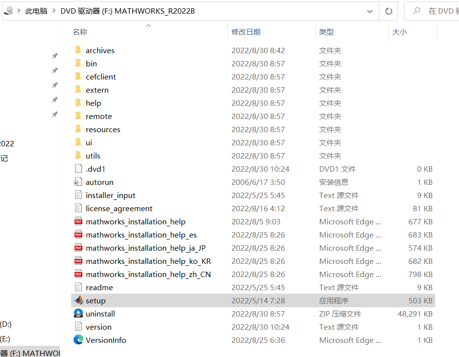 3.双击打开”R2022b_Windows“文件,会发现进入一个新的盘符里