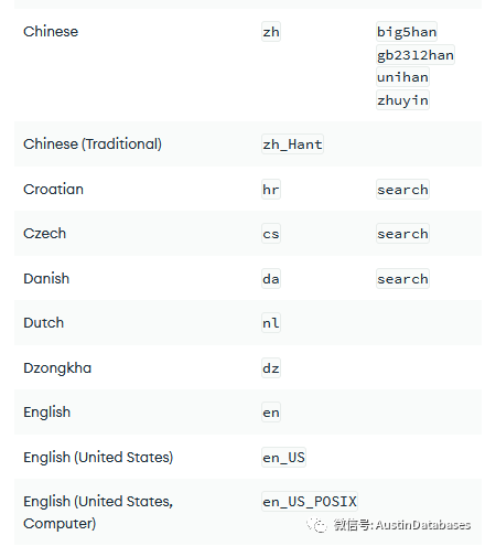 1 locale :locale 在collation 的使用中是一个核心的参数,这个参数是针对整个collection 进行的设定,这里有的collation有小的选择项,所以撰写的方法需要根据你的collation的情况来定。 参见下图如 Chinese 中zh 包含了4种小的选项。