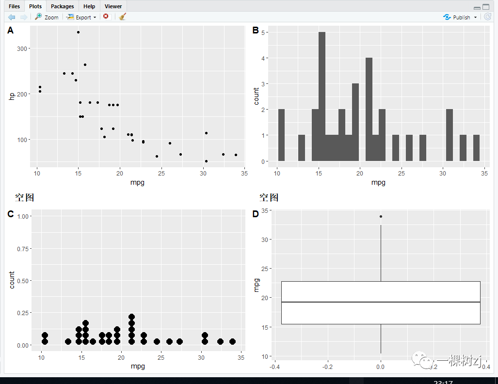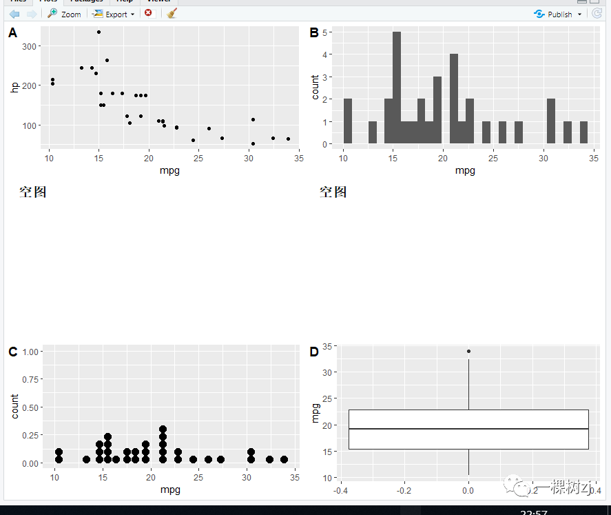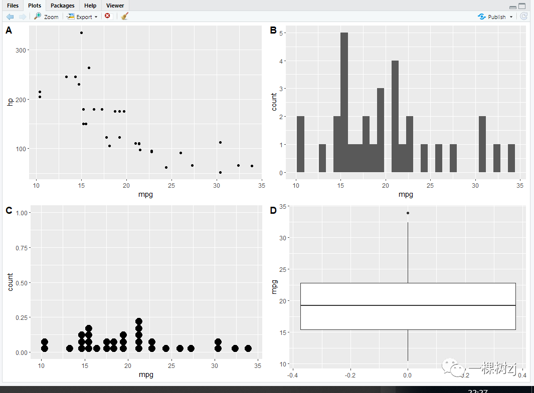 比如,我们将A、B、C、D四幅图打包在一个list:pl(plot list)中。