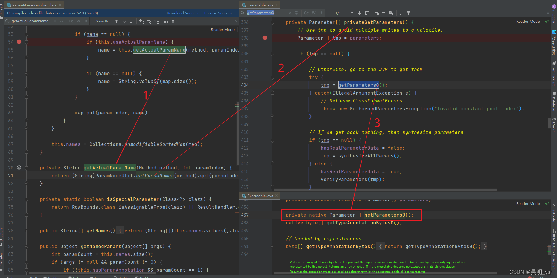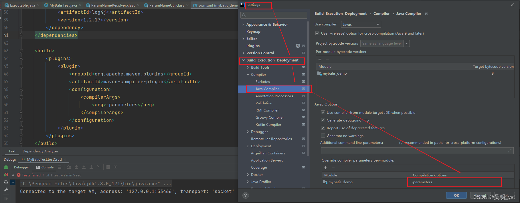 涉及到的知识点: jdk8新增了-parameters参数,开启此参数可以将编译后的class文件保留源码中的参数名称,而不是(arg0,arg1)。保留参数名称方便判断反射参数。此处便运用在Mybatis中mapper接口传参中。