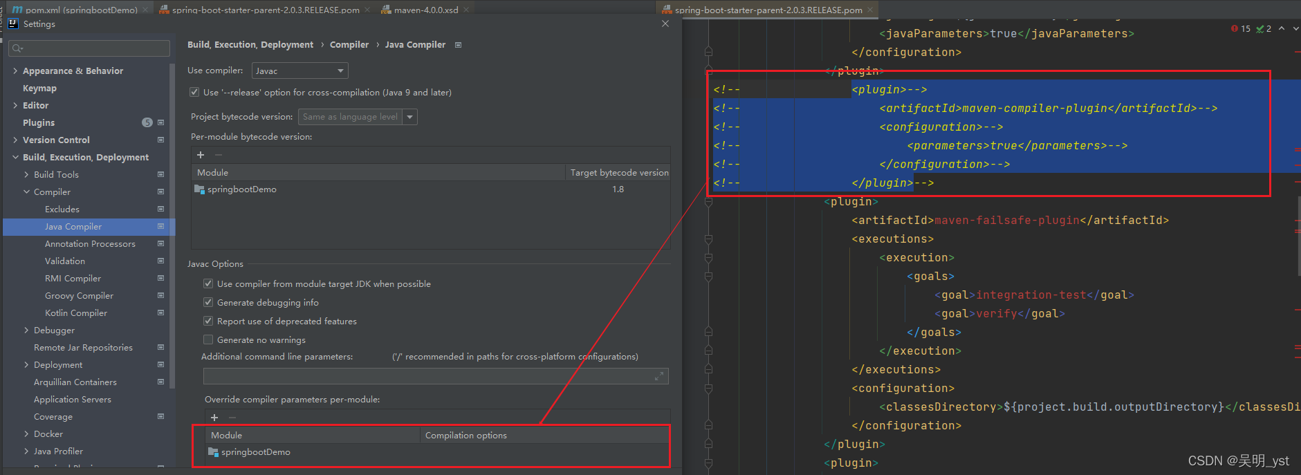 </build>添加插件和参数后, 可以在idea查看编译器添加参数的情况。