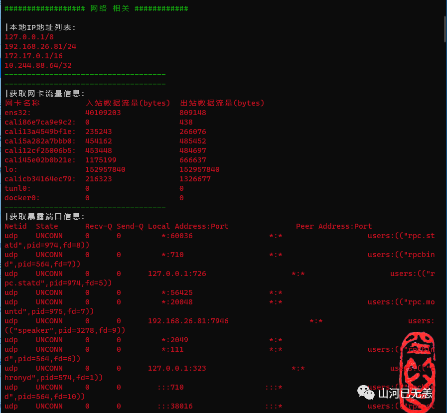 echo -e "\n\033[32m################## 网络 相关 ############\033[0m\n"