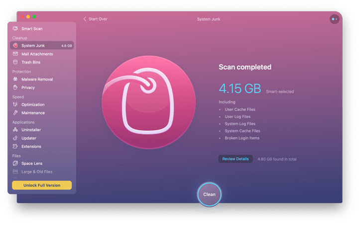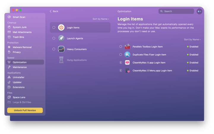 CleanMyMac X 通过优化登录项和保持驱动器的性能来帮助提高系统速度。 它还能够消除应用程序错误并提高搜索速度结果。