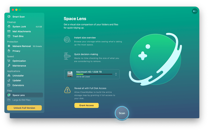 CleanMyMac X为您喜欢的东西留出空间。拥有一系列新颖的新功能,CleanMyMac可让您安全,智能地扫描和清理整个系统,删除未使用的大文件,减小iPhoto图库的大小,卸载不需要的应用程序或修复那些无法正常工作的应用程序,管理所有您可以从一个地方扩展您的内容,并做更多的事情-所有这些都来自一个新设计的精美简单界面。