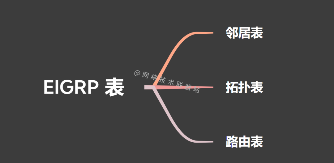 EIGRP对其路由操作使用不同的表,在EIGRP中主要使用了三种类型的 EIGRP表: