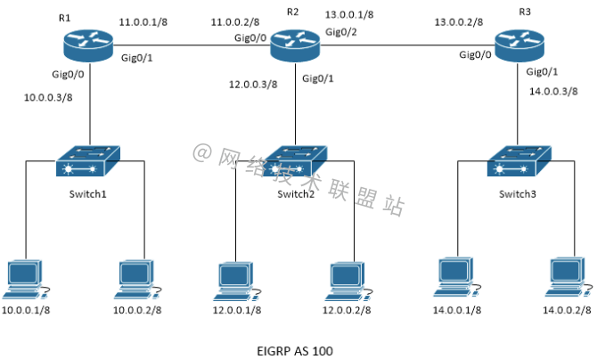 填充 EIGRP 路由器的拓扑表后,EIGRP 进程会检查所有学习到的网络路由并选择通往每个网络的最佳路由,EIGRP 认为具有最低度量的网络路由是通往该网络的最佳路由。