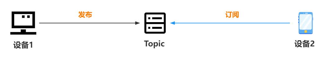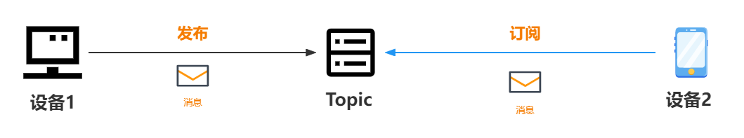 如图,设备 1 在某个主题上发布消息,设备 2 订阅了与设备 1发布的主题相同的主题,随后设备 2 就能接收到消息。