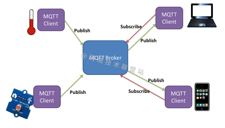 MQTT 代理负责接收所有消息, 过滤消息, 决定谁对它们感兴趣,然后将消息发布给所有订阅的客户端。