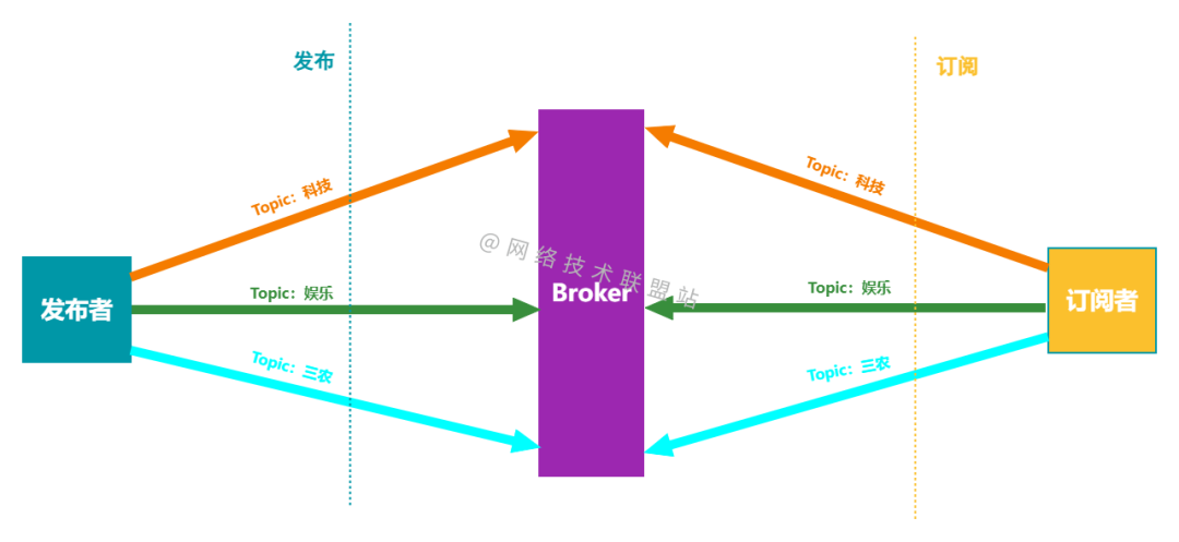 以公众号为例,创作者是一个个发布者,公众号的服务器是Broker,读者是订阅者,不同领域的发布者向不同的主题(领域)发布文章,比如瑞哥一般都是朝科技领域发布文章,那么所有读者(订阅者)订阅了科技领域的都可以看到我的文章。