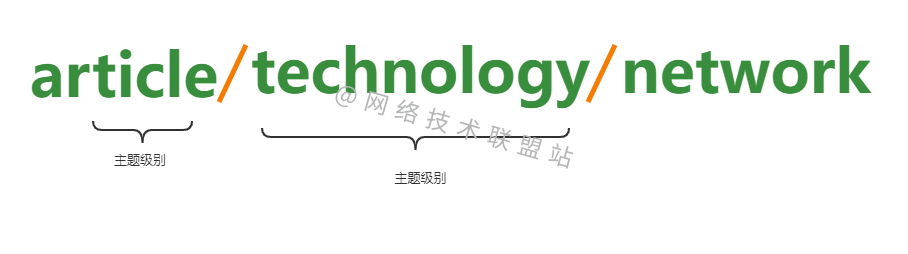 主题用正斜杠分隔的字符串表示,每个正斜杠表示一个主题级别。