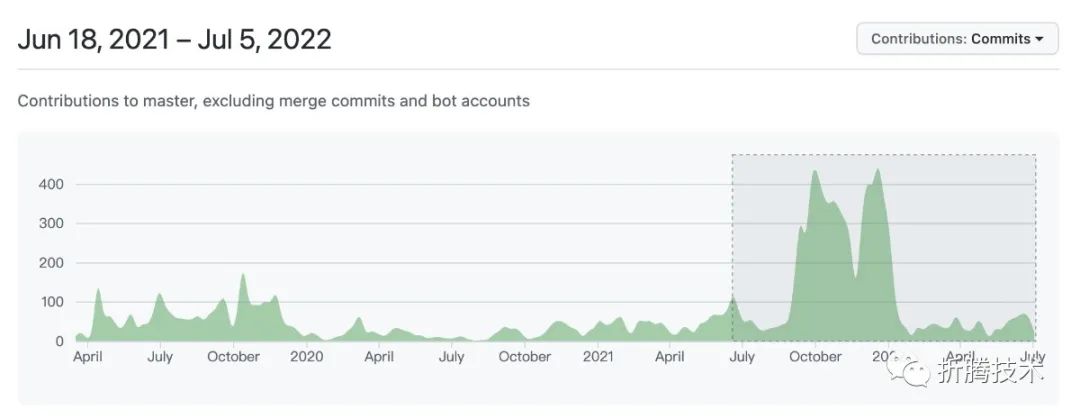 GitHub 上 Milvus 项目最近一年的“代码提交量”