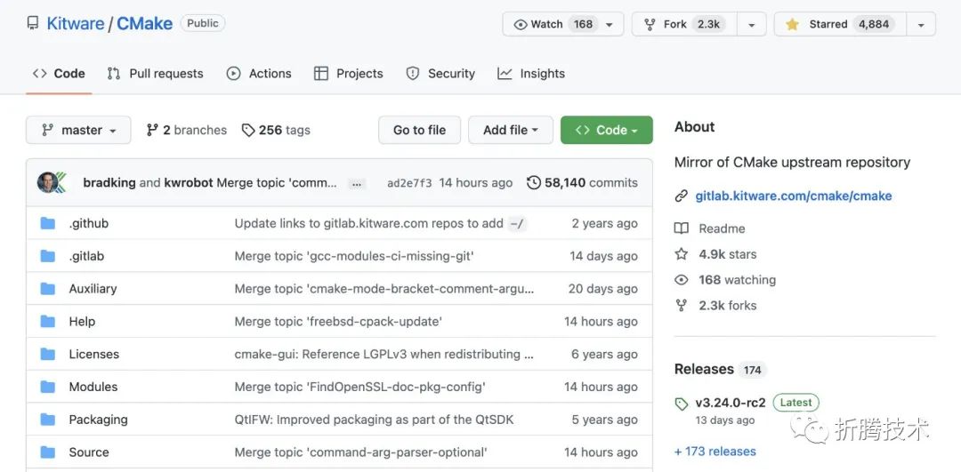 CMake 在 GitHub 上的镜像仓库概况