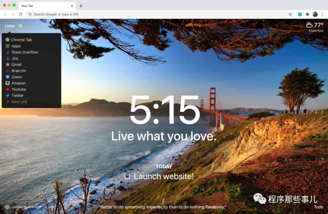 Momentum 可以帮助您提高开发人员的工作效率。它允许您将浏览中的新标签页替换为可自定义的仪表板,其中包括待办事项列表、天气预报和鼓舞人心的报价。