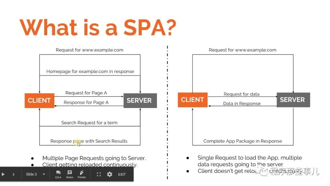 单页面应用的英文名称是SPA(single page application),和传统的多页面应用不同,它只有一个页面,页面的内容变化都是通过js来进行动态修改渲染。