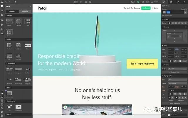 “无代码平台允许不懂代码的人开发出和软件工程师完全相同的应用程序,” Webflow就是一种不用代码就能完成传统上使用代码完成的能力的web平台。