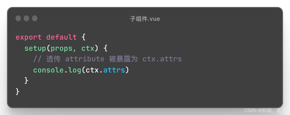 透传是vue中一种特性,官方的解释是:“透传 attribute”指的是传递给一个组件,却没有被该组件声明为 props 或 emits 的 attribute 或者