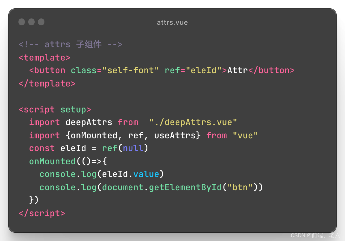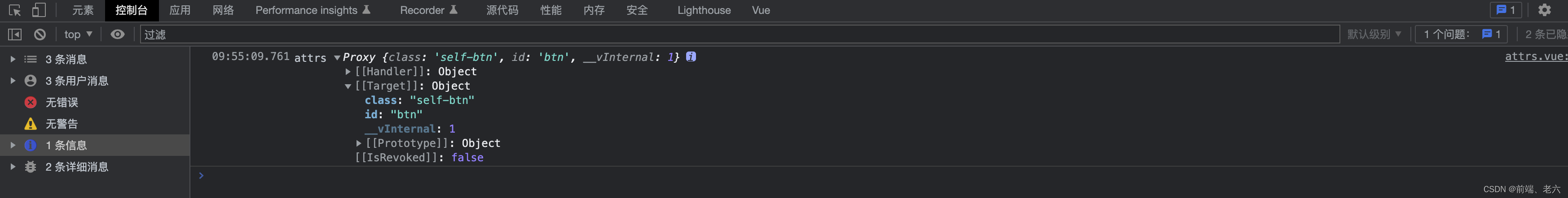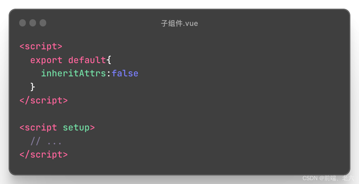 如上所示,我们给js模块部分添加 inheritAttrs:false即可,默认的值是true,设置为false的时候透传的属性久不存在了